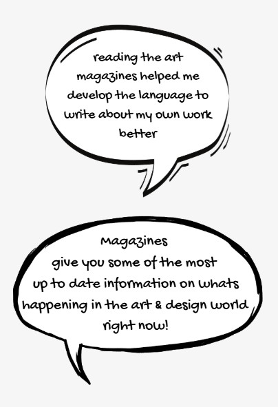 The library has print magazines covering Art, Photography, Fashion & Textiles, Graphic Design, Typography, Printmaking, and so much more.